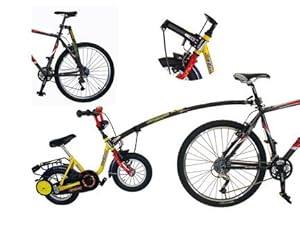 One option I found enables you to connect with a regular child's bike, which has the obvious benefit of flexibility. It's called the Trail Gator Bicycle Tow Bar. So, this would give the kids the option of going solo or connected. Here's the Trail Gator existing bike: